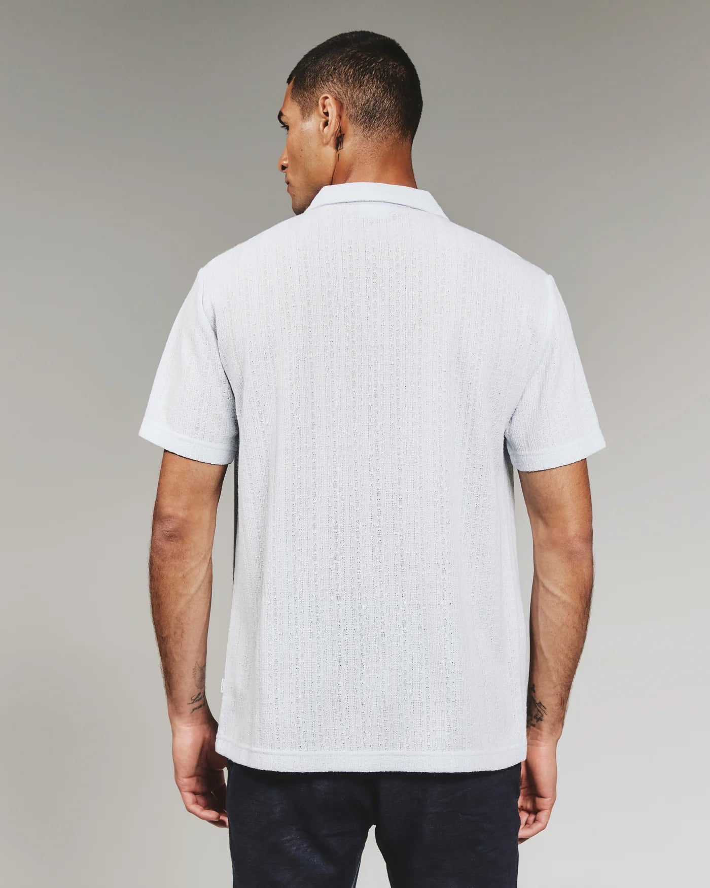 A knit texture shirt with an exquisite pointelle detail throughout the fabric. Perfect for the beach and all your other sun-soaked adventures.
