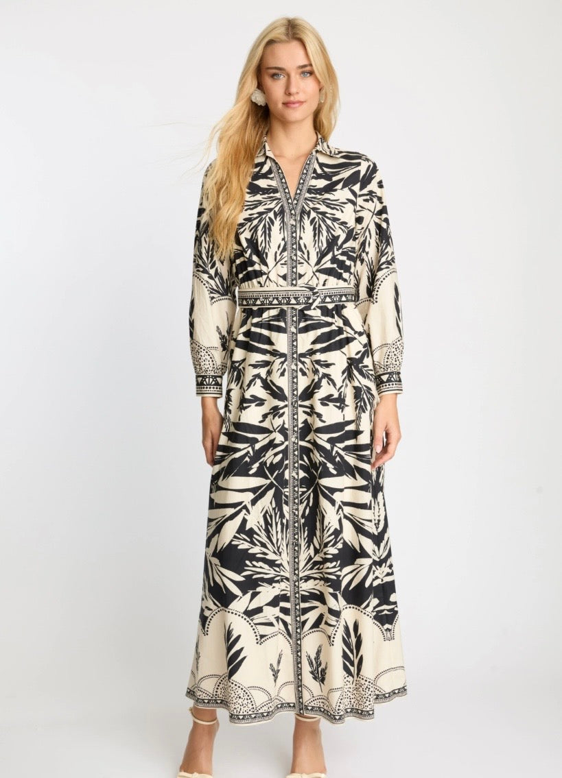 Effortlessly elegant, the Talia Dress in Ambergrain is a timeless wardrobe staple crafted from breathable cotton for all-day comfort. Featuring a striking botanical print in warm amber and black tones, this dress blends classic design with modern sophistication.