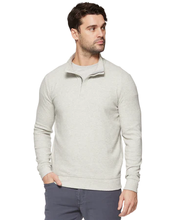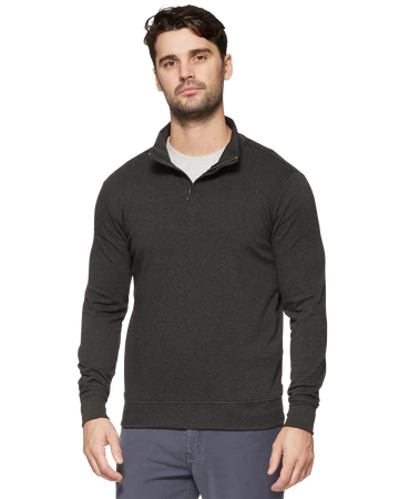 Comfortable, casual, and easy to wear, our Hero Twill 1/4-Zip Pullover is an optimal layer for weekends and weekdays alike. Crafted from a warm, mid-weight cotton blend fabric with a hint of stretch for easy movement and a naturally soft and breathable feel, this timeless pullover features a sophisticated heathered twill pattern for the perfect blend of rugged and refined. Standing mock neck collar; 1/4-length front zipper from chest to chin. Tailored athletic fit.