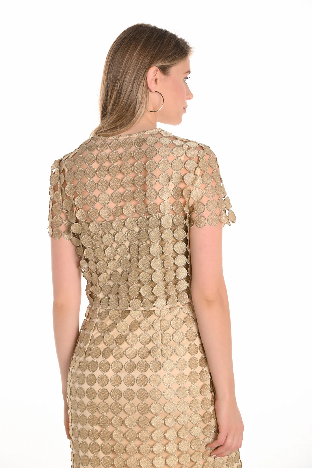 Step into sophistication with Frank Lyman's hip-length, regular fit vest. Designed with an open front and adorned with jewels, this plain, collared piece is perfect for formal, semi-formal, or night-out occasions. The short, cap sleeves add an edgy, feminine touch, making it an essential addition to your everyday wardrobe.