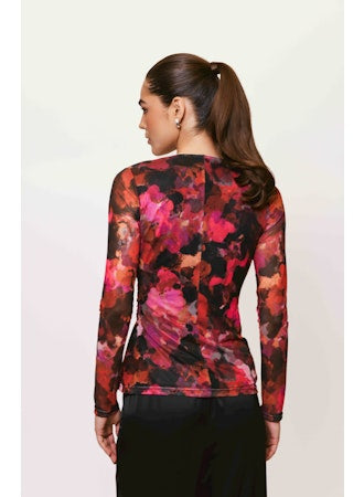 Long sleeve surplice faux wrap blouse in Pink Multi Abstract Paint Blot