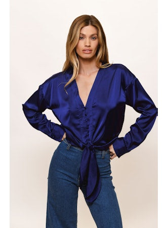 Long Sleeve Tie Top in Off White