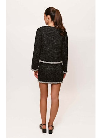 Boxy open front jacket with crystal trim in Black