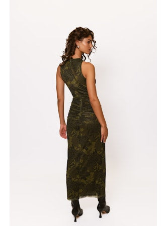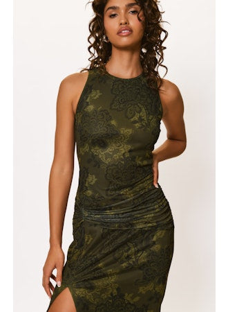 Tie maxi dress with slit in Olive Bohemian Paisley