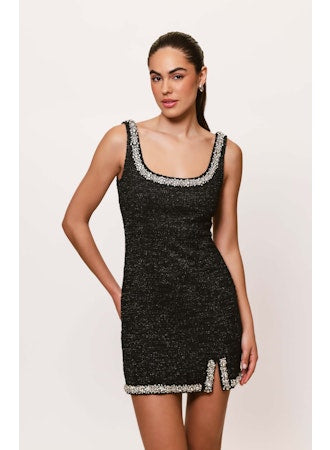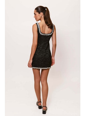 Scoop neck sheath mini dress with crystal trim in Black