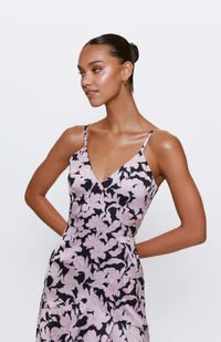 Sleeveless oasymetrical maxi dress in Navy Condensed Dramatic Outline Floral