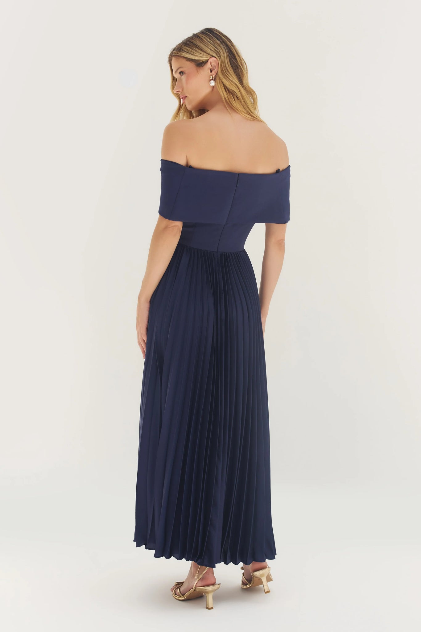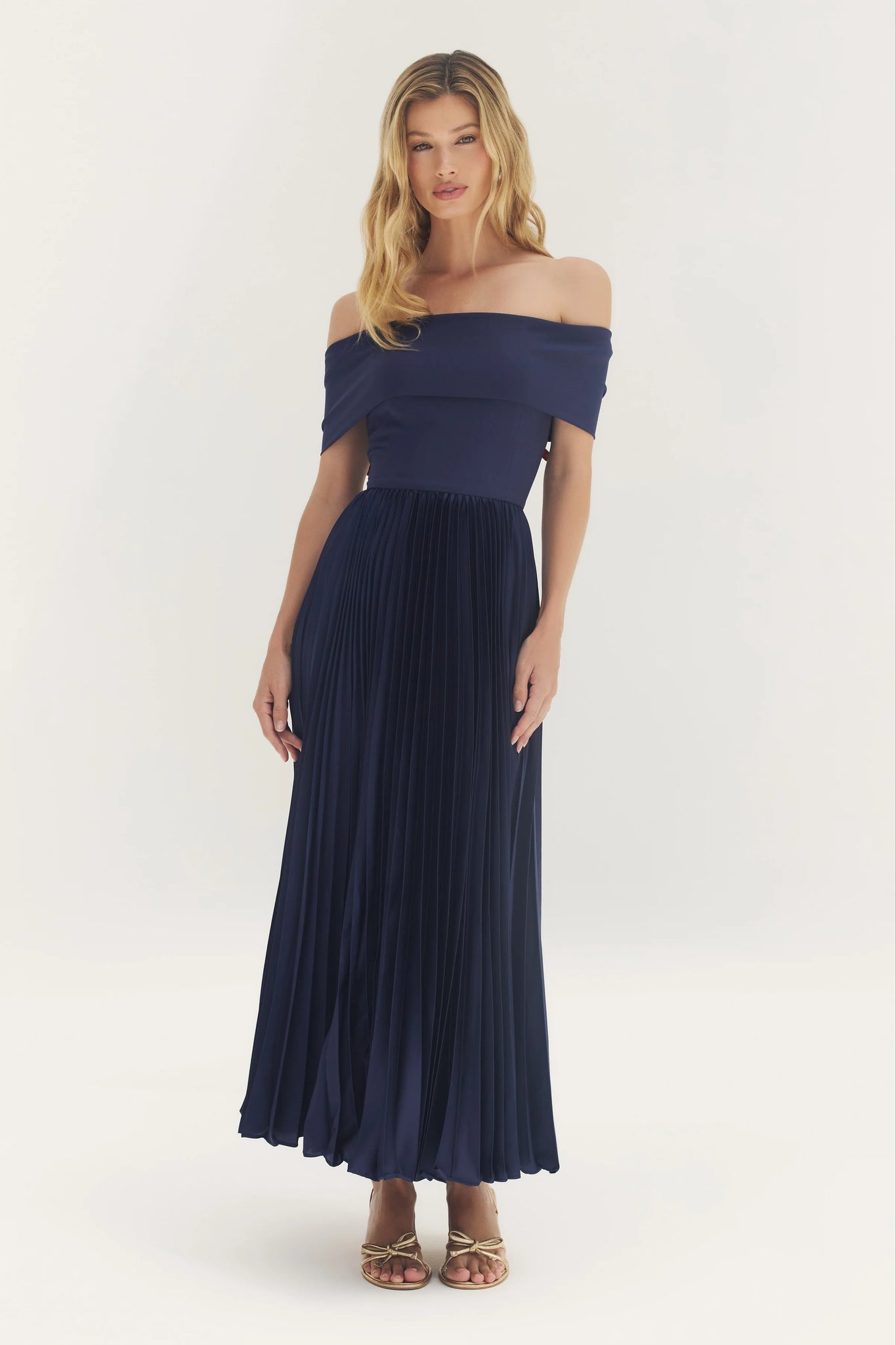 Off the shoulder pleated Midi Dress