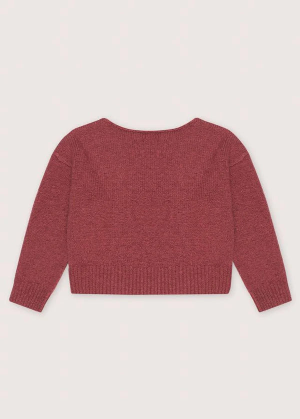 Soft-finish jumper with a V-neck with machine-finished edges, dropped sleeves, and ribbed cuffs and hem.